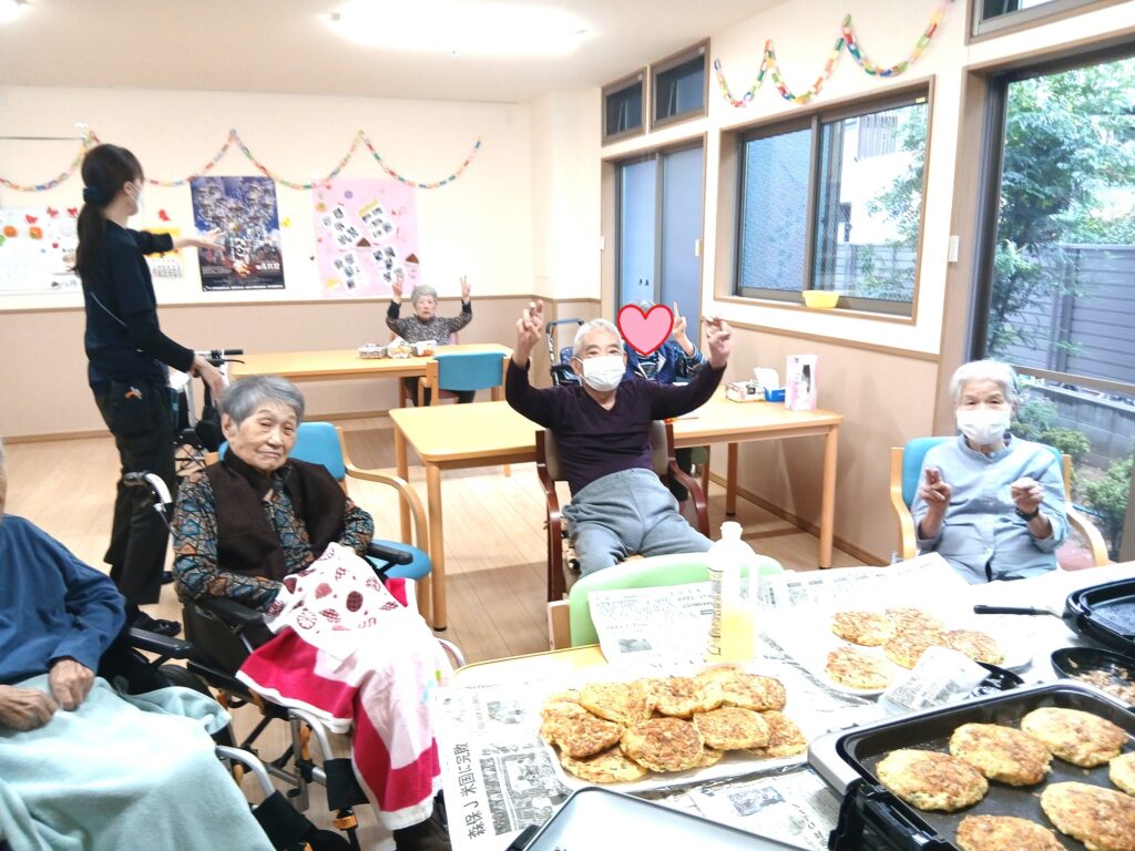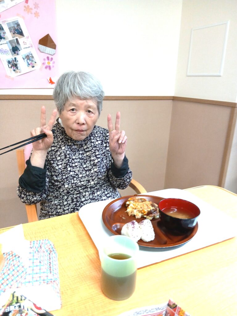 2025.11.27 お知らせ 10月22日、お好み焼きイベント♪ 10月22日の食堂で、スタッフみんなでお好み焼きを焼きました。 普段、お食事が進まない方も勢いよく召し上がって下さいました♪ 毎日するべきかな?( ´∀` )