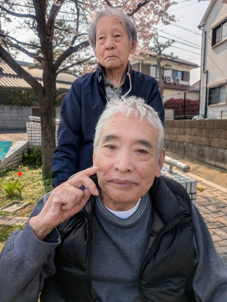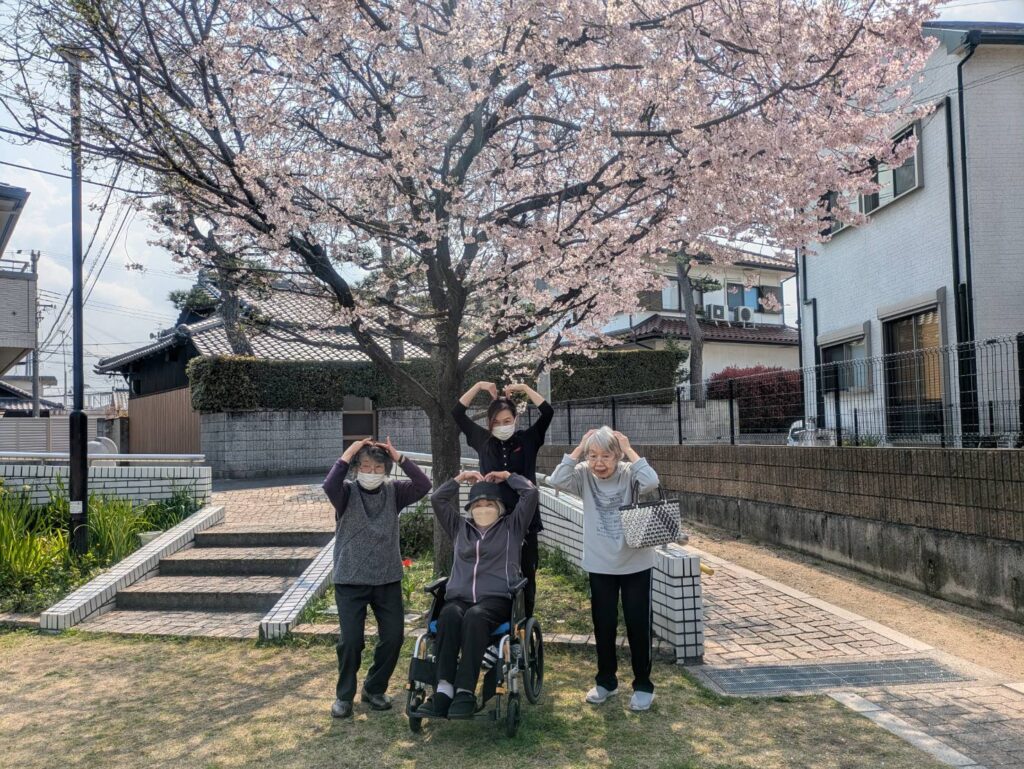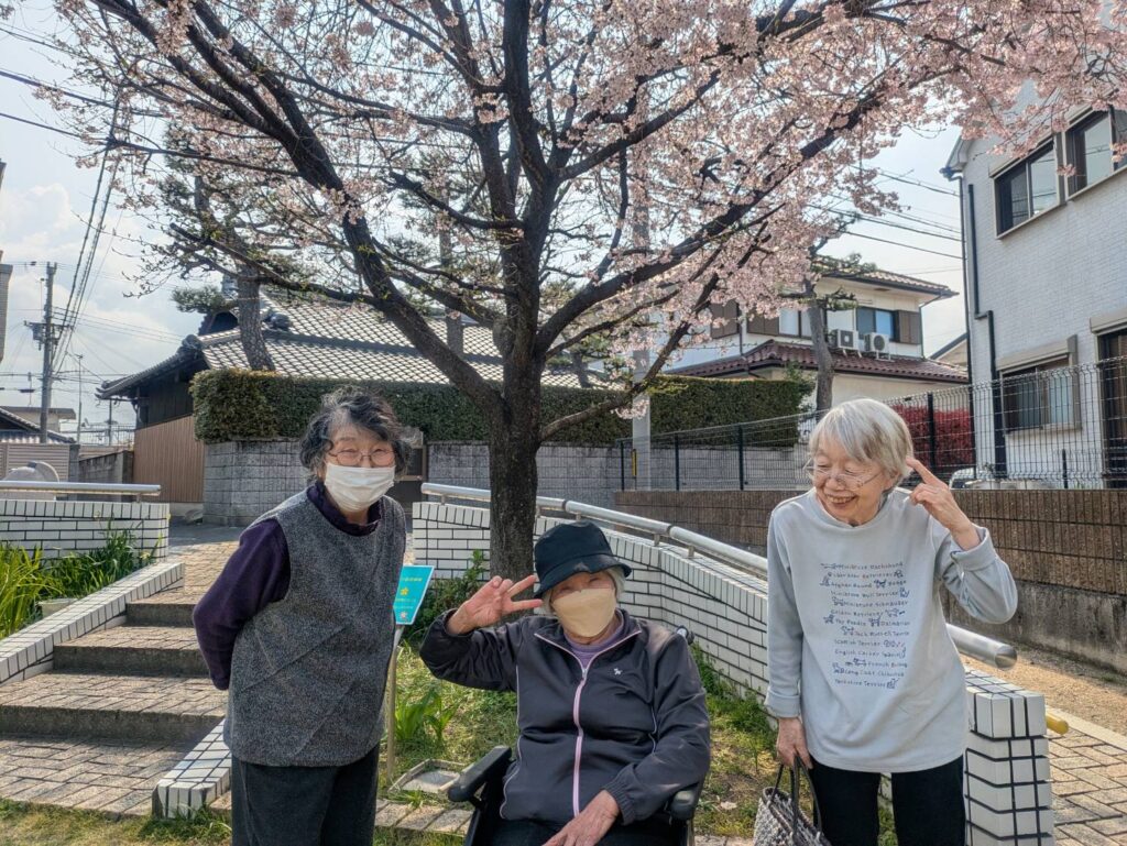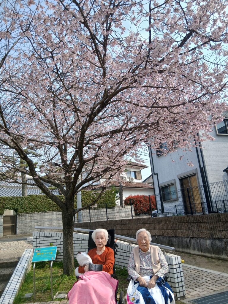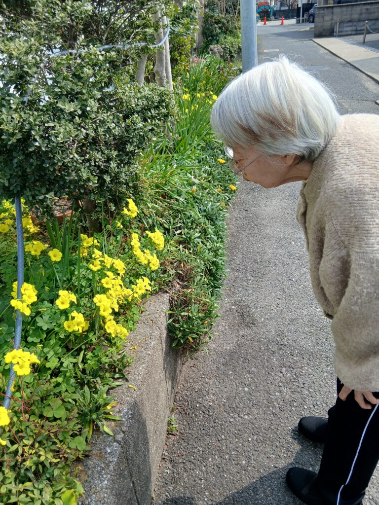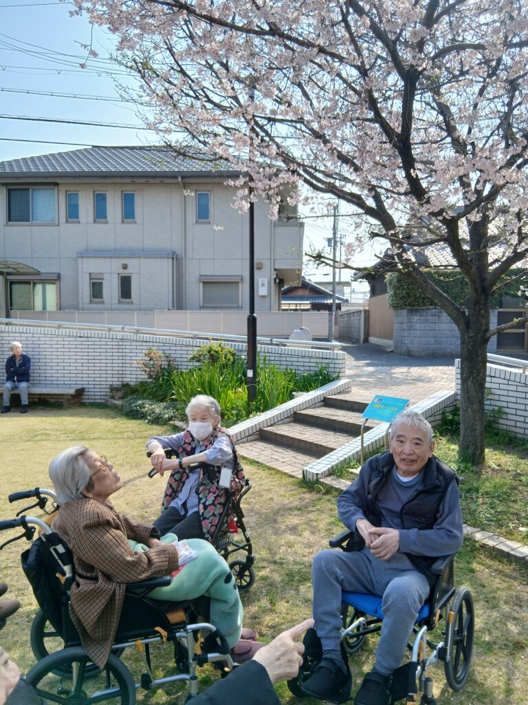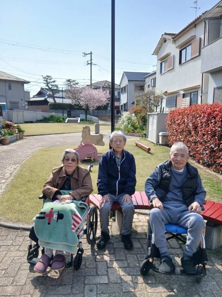 お天気が良く、入居者様とお散歩です。